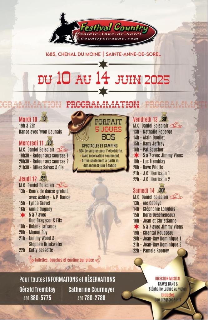 Jeudi 12 juin à 13h, découvre la danse country pour débutants au cœur du Festival Country Sainte-Anne-de-Sorel, au 1865 Chenal du Moine. ![]()