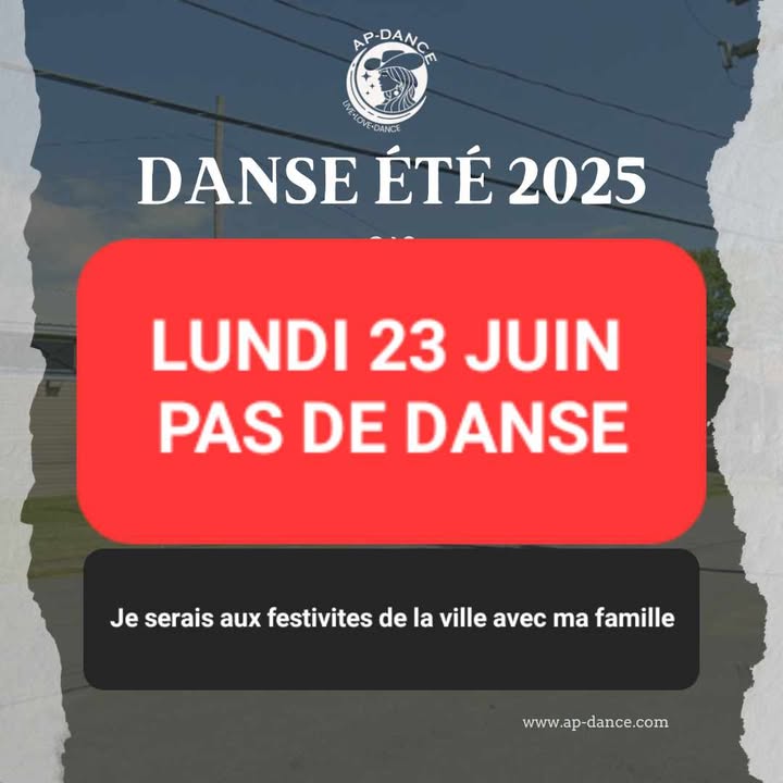 Prendre note que lundi le 23 Juin il y aura pas de danse à St-Robert!! On se revoit le 30 Juin.